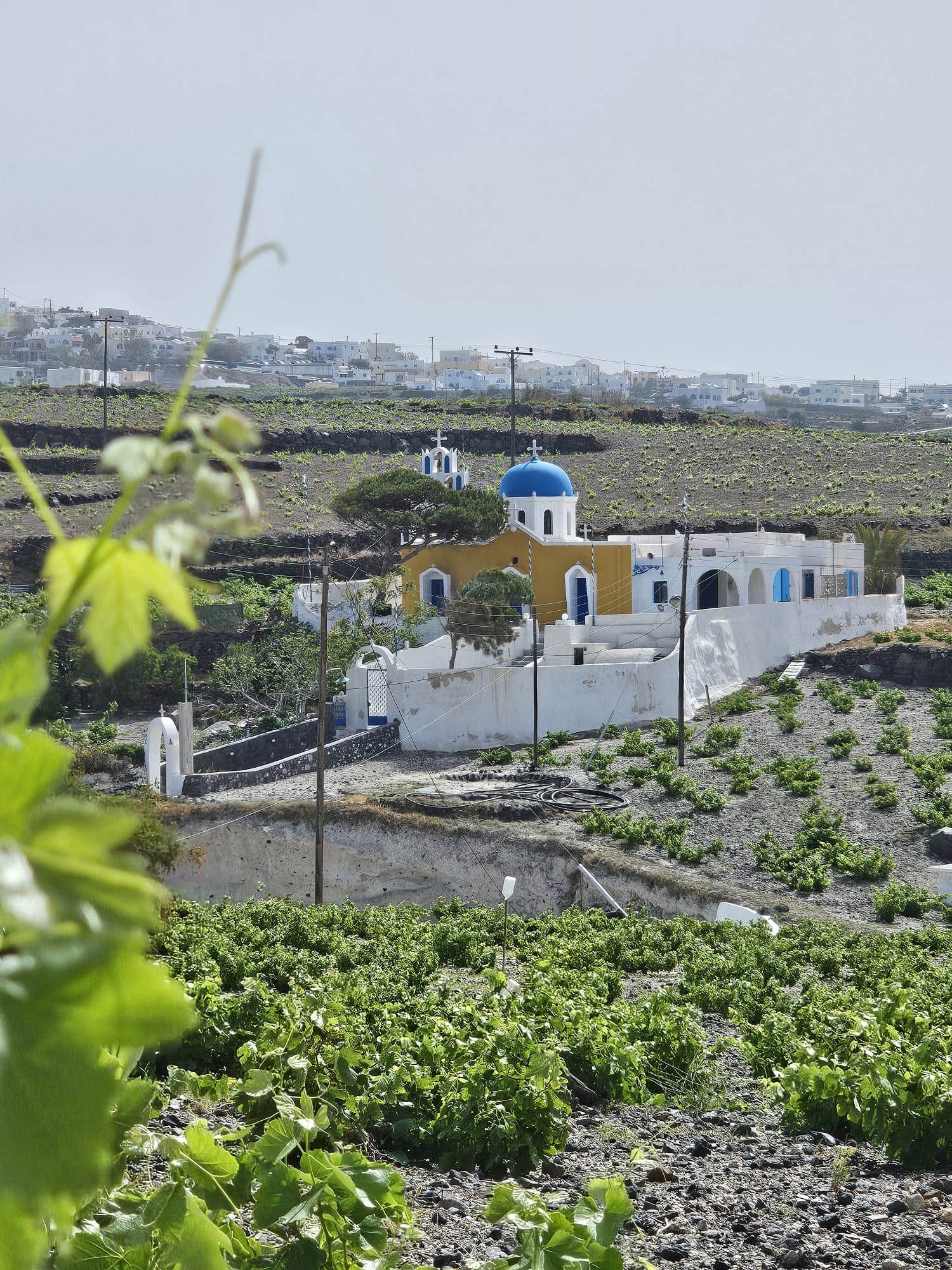 Et voilà notre première visite ! Avant cela, nous avons fait quelques courses dans un supermarché grec… Les Carrefour Market sont plutôt chers. Pour notre première journée, nous sommes allés à Pyrgos. Nous avons trouvé un parking gratuit (pendant tout le séjour, nous nous sommes garés gratuitement). Ce petit village abrite plusieurs points de vue panoramiques ainsi que l’église de la Sainte Trinité, qu’il est possible de visiter. J’ai également constaté que c’était l’endroit avec les boutiques de souvenirs les moins chères.