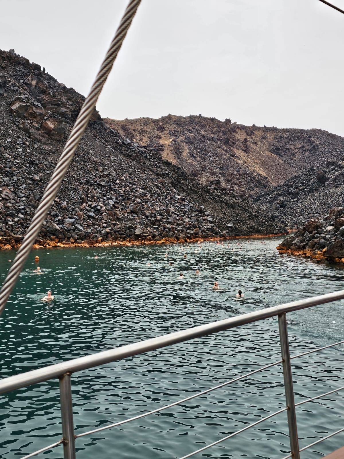Durant notre croisière, il est possible de se baigner dans des sources d’eau chaude. Il y a environ 50 à 70 mètres à nager dans l’eau à 18 degrés avant d’atteindre les sources… Comment dire, cela m’a refroidi. Nous nous sommes reposés sur le bateau, cette activité ne dure que 30 minutes maximum. J’avais également peur d’avoir froid lorsque le bateau allait naviguer en étant mouillée.
