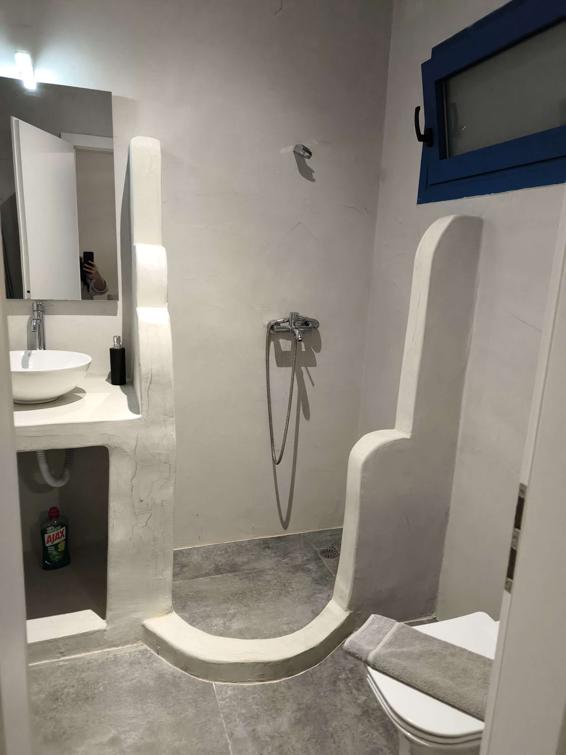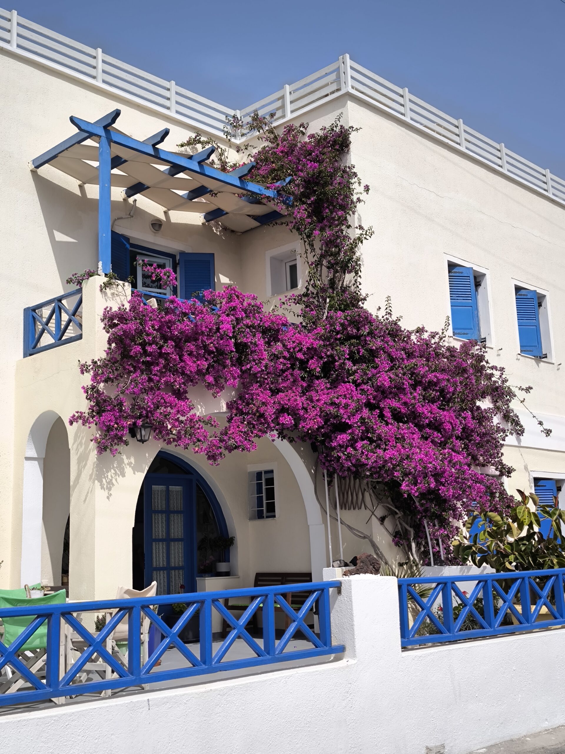 Nous avons loué une voiture chez Sixt. Pour le logement, nous avons opté pour un appartement à Perissa pour 525 euros les 10 nuits. Perissa est beaucoup moins fréquentée, avec une plage, des restaurants; bref, c’est une petite station balnéaire calme ! Le logement était simple, propre et disposait de suffisamment de place pour se garer. Il faut savoir que dans les villes touristiques comme Fira, il est difficile de trouver un hôtel avec parking car la ville est en pente, contrairement à Perissa. Notre logement était bien équipé : réfrigérateur, cafetière, wifi, climatisation, et un espace pour étendre le linge. Bref, c’était un bon plan !